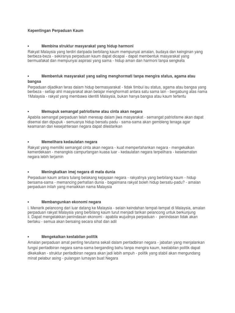 Kepentingan Perpaduan Dalam Kalangan Masyarakat Pdf